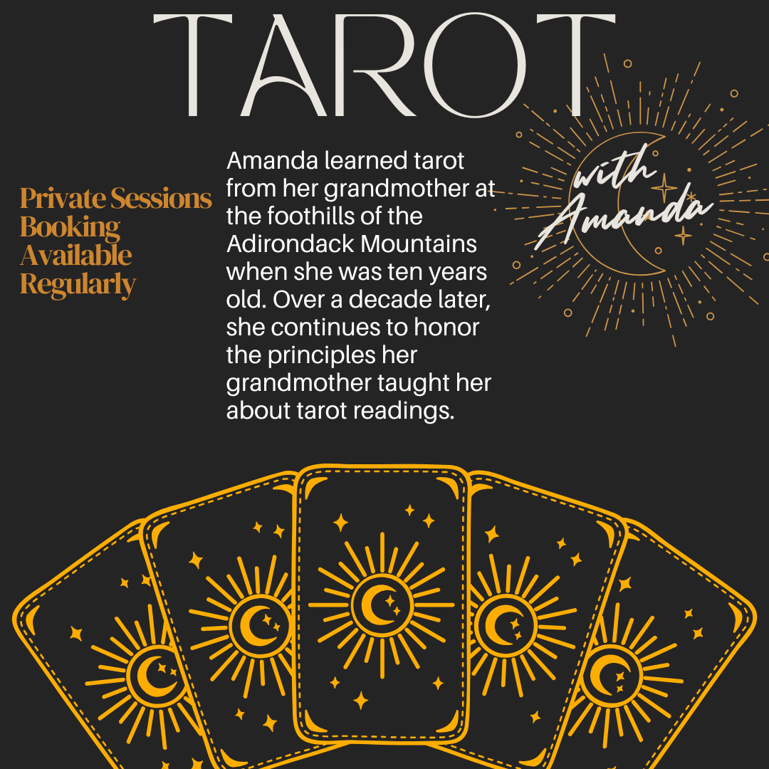 Under the gentle guidance of her grandmother, Amanda first discovered the art of tarot at the foothills of the Adirondack Mountains when she was just ten years old. The wisdom passed down through generations became the foundation of her practice—one rooted in intuition, reverence, and deep spiritual insight. Now, over a decade later, she continues to honor these sacred teachings, embracing tarot as a luminous tool for self-discovery and emotional clarity. For Amanda, each reading is an act of compassion, offering guidance with warmth, empathy, and a profound respect for the journey of the soul.